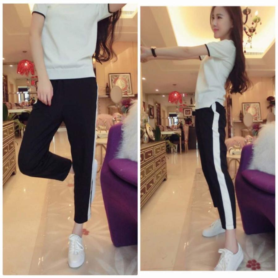レディース ジャージ セットアップ クルーネック ライン ヨガ ランニング Tシャツ 半端丈 パンツ トップス ボトムス カジュアル キュート 可愛い H エルネフジャパン 通販 Yahoo ショッピング